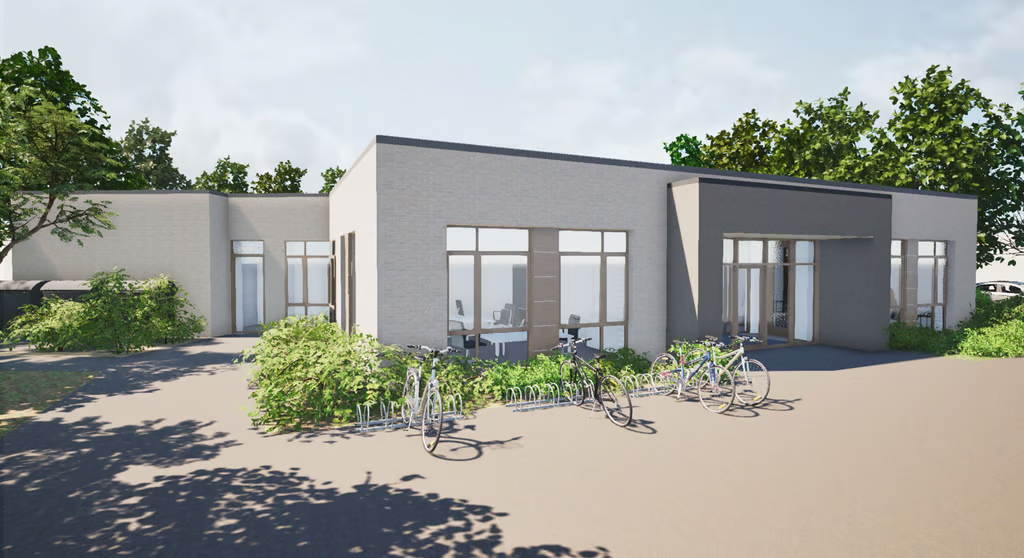 Die Außenfassaden bestehen aus grauem Verblendmauerwerk, der Innenausbau erfolgt in Holzbauweise. Das Konzept verspricht, Matthias Austermann zufolge, einen hohen, in Gesundheitszentren dringend benötigten Schallschutz. Außerdem lässt der Innenausbau mit Holzplatten jederzeit kostengünstige Änderungen zu, wenn eine andere Raumaufteilung erforderlich werden sollte. Bezüglich der Heizung setzt Austermann auf Wärmepumpen und Fußbodenheizung.
